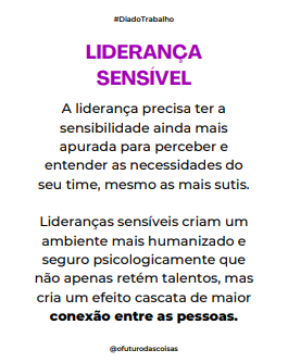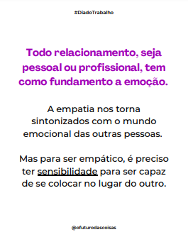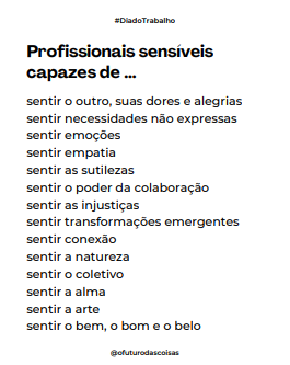 Mais feliz ainda foi ler este conteúdo no perfil de “O Futuro das Coisas”, que acredita que a próxima revolução do trabalho será a sensibilidade. Tomara!