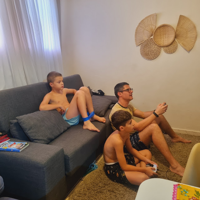 Tudo seguindo seu fluxo: filhos bravos comigo porque não deixo eles assistirem celular e nem jogar videogame de segunda a sexta, porque o pai os obriga a ler 10 páginas de livros por dia, Mimi que sai 10 vezes da mesa enquanto está comendo, se atrasa de propósito para ficar pronto para a escola só para irritar Beni, implicância constante entre os dois, enfim, as mazelas do dia a dia de uma família tentando acertar – às vezes com mais calma, às vezes com mais severidade, mas sempre tentando acertar.