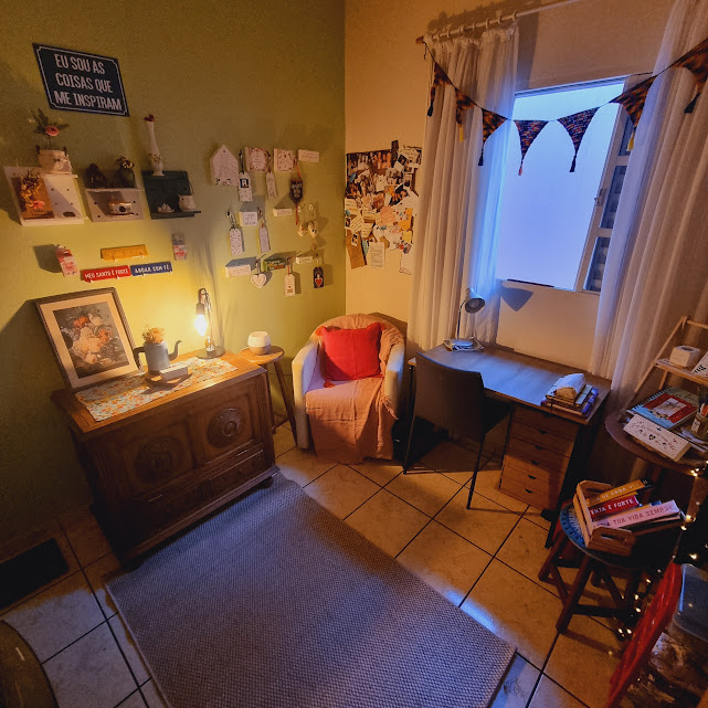 Sentia falta no escritório/loja ter um espaço para minha escrita, para focar apenas no meu processo criativo que primeiro precisa vir com caneta ou lápis e papel.