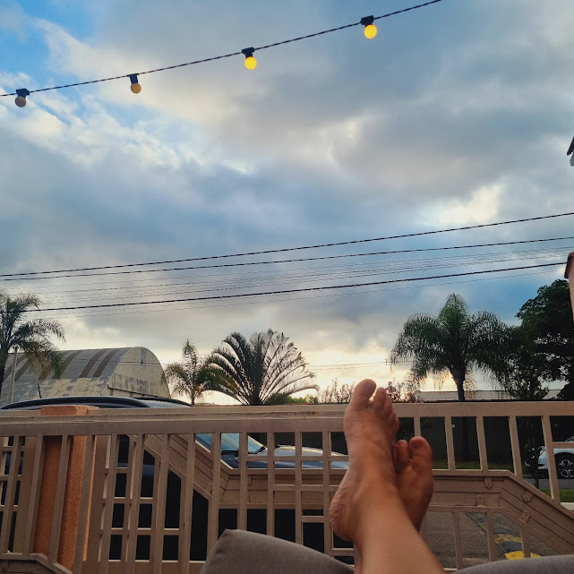 Gosto de registrar essa parte que é maioridade nos meus dias: o pôr do sol, as luzinhas na minha varanda, ouço o canto dos passarinhos, a conversa dos meus meninos, a cama que fica bagunçada até mais tarde aos finais de semana… tudo compõe essa vida comum, que eu amo tanto viver – os dias bons e os especialmente chatos.
