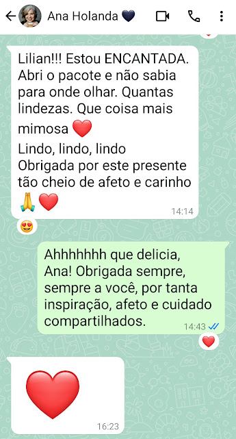 Mudei as coisas todas, montei meu cantinho, enviei produtos e recebi em uma das devolutivas este presente da Ana Holanda.